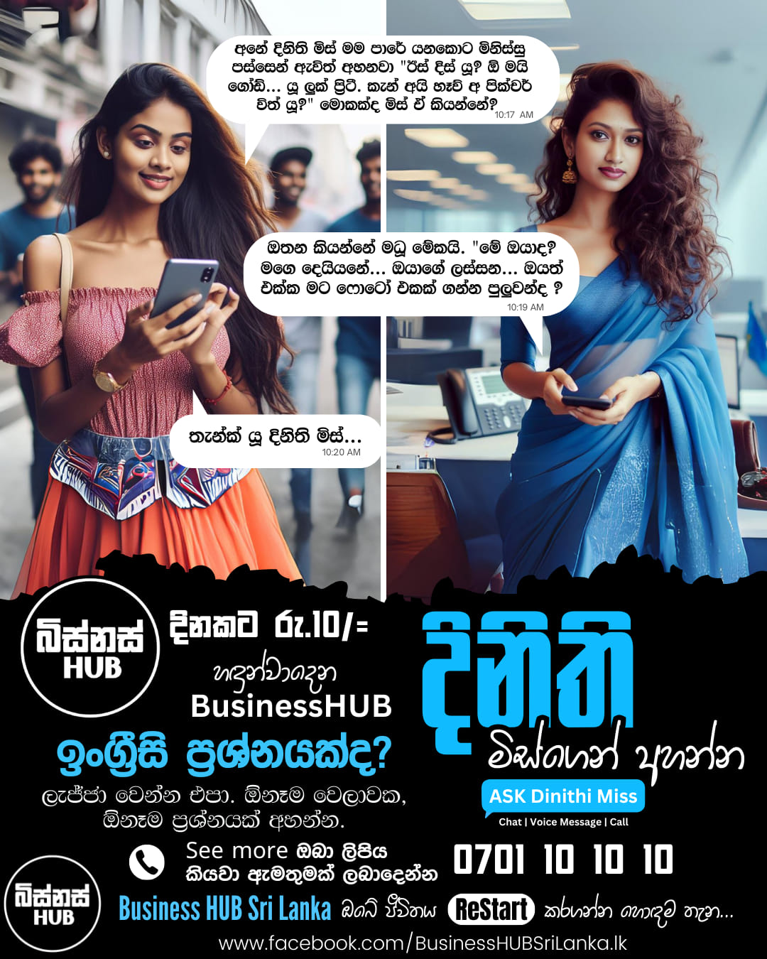 හඳුන්වාදෙන Business HUB Ask Dinithi Miss - දිනිති මිස්ගෙන් අහන්න (Chat | Voice Message | Call) ශ්රී ලංකාවේ පළමු වතාවට Business HUB වෙතින් අලුත්ම...