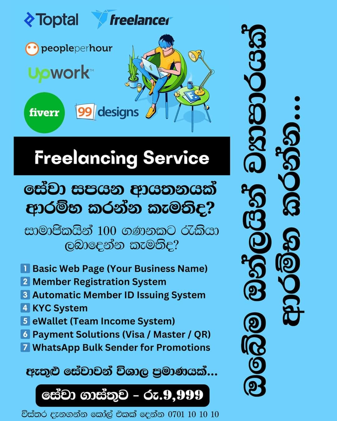 ගොඩක් අය කැමතියි තමන්ගේම පොඩි බිස්නස් එකක් පටන් ගන්න... Sproutgigs, MicroJobs, Freelancer, Upwork, PeoplePerHour, Fivver වගේ සේවා සපයලා ආදායම්...