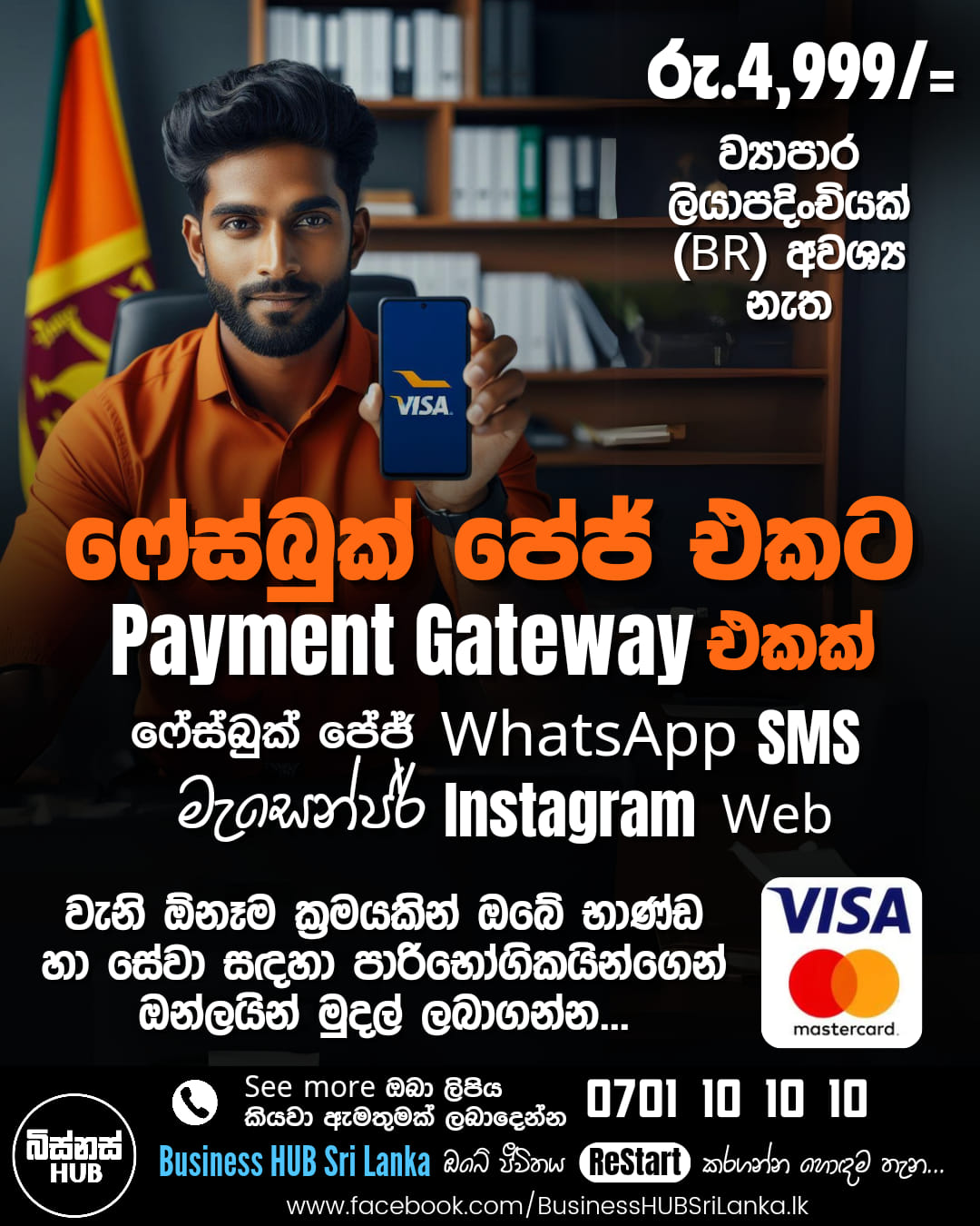 ෆේස්බුක් පේජ් එකට හෝ WhatsApp හරහා මුදල් ලබාගන්න පුලුවන් Payment Gateway එකක්... ඩොලර් වලින්ද පාරිභෝගිකයන්ගෙන් මුදල් ලබාගන්න පුලුවන්... ඔබ...