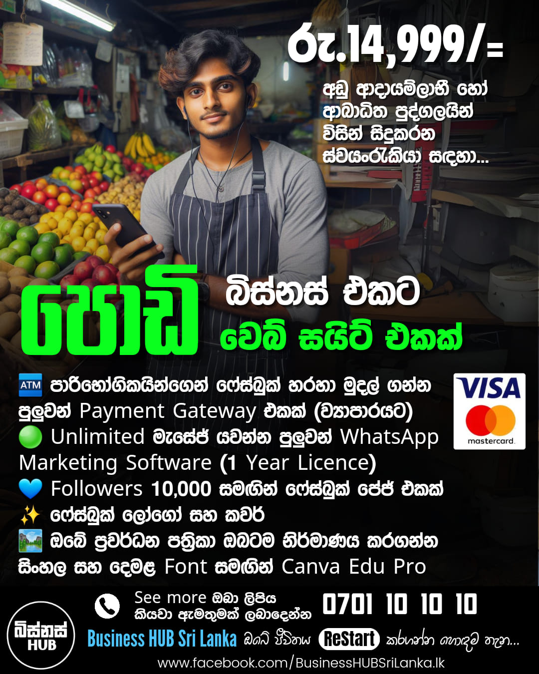 පොඩි බිස්නස් එකට පොඩි වෙබ් සයිට් එකක් | රු.14,999/= දිරියෙන් නැගීසිටින්න වෙරදරන ස්වයංරැකියා / කුඩා පරිමාණ ව්යාපාර 10කට පමණයි ! 🧑🦼 ආබාධිත අයට,...