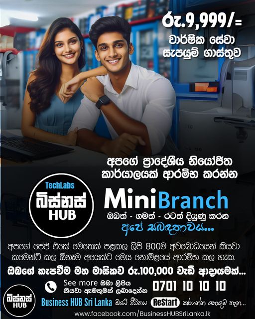 TechLabs Business HUB Mini Branch | ඔබත් - ගමත් - රටත් දියුණු කරන අපේ සබඳතාවය... 📅 වාර්ෂික සේවා ගාස්තුව - රු.9,999/= මෙම ගාස්තුව වාර්ෂිකව ගෙවිය...