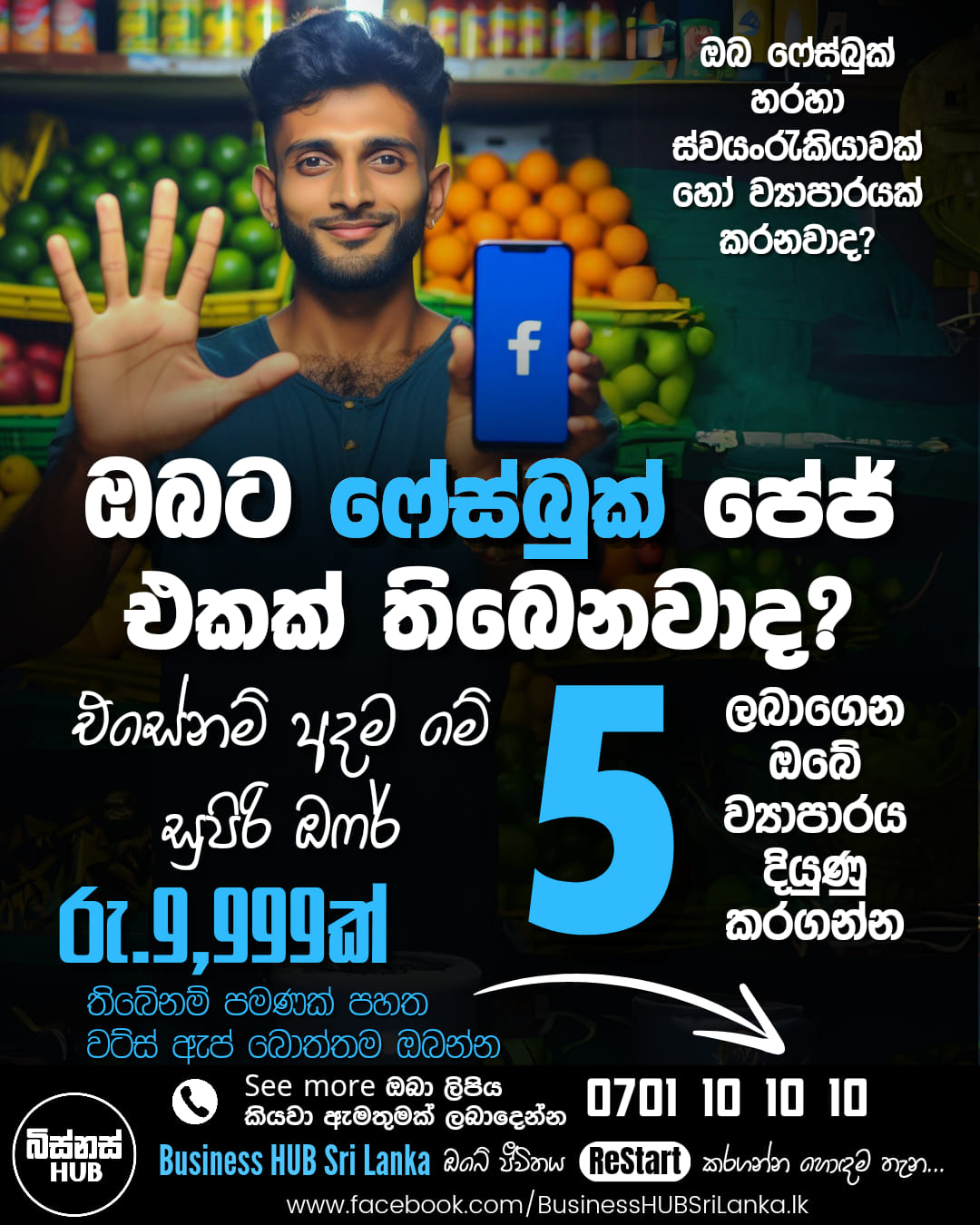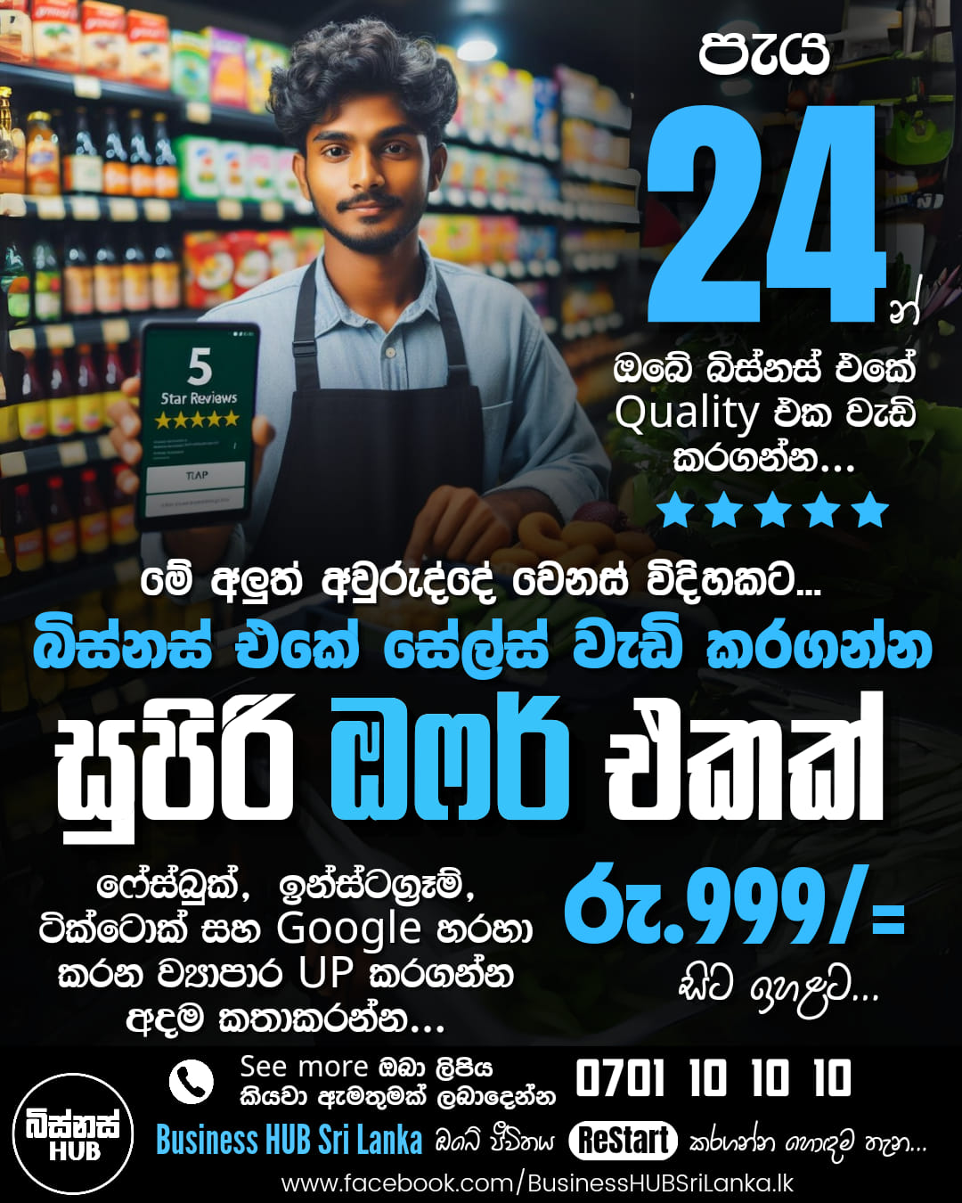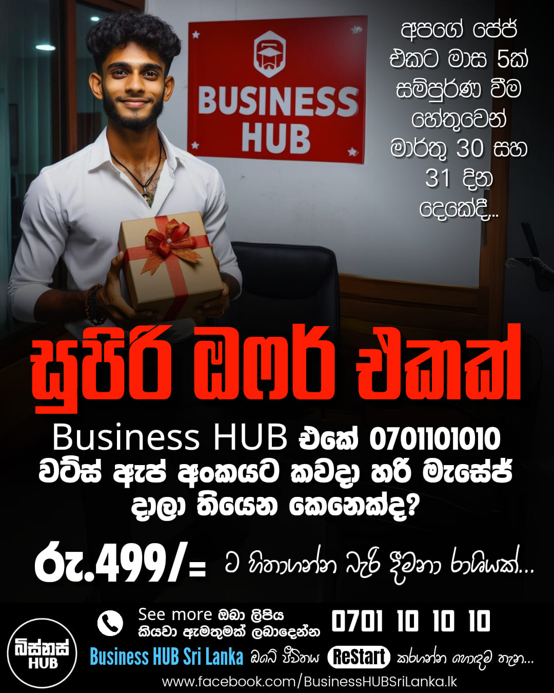 ඔබේ ව්යාපාරයට සුපිරි Boost එකක්... වැඩි විස්තර සඳහා අමතන්න 0701101010 Details අවශ්යයිනම් පහත වට්ස් ඇප් බොත්තම ඔබන්න... Business HUB Sri Lanka -...