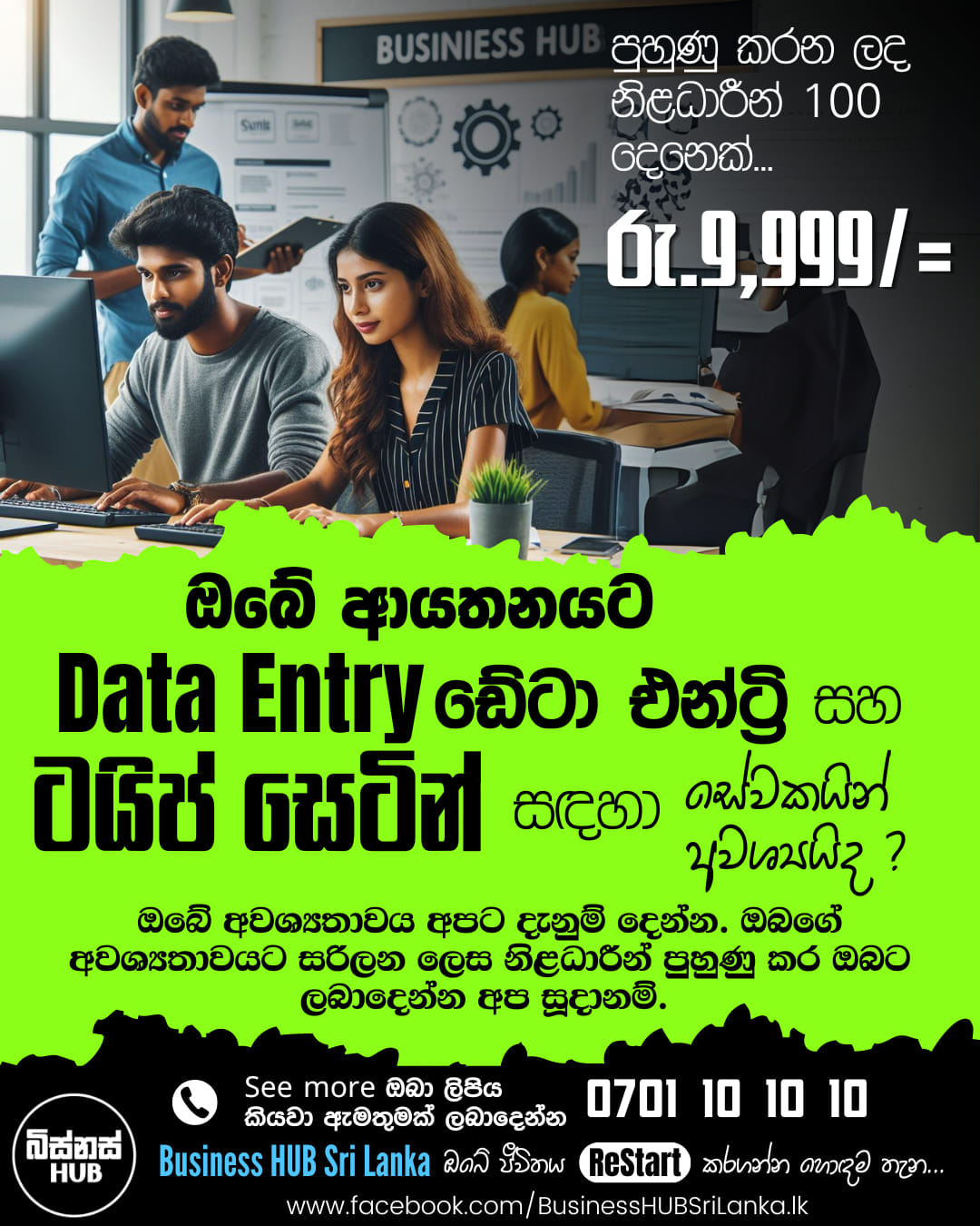 ඔබේ ආයතනයට ඩේටා එන්ට්රි සහ ටයිප් සෙටින් (Data Entry & Type Settings) සඳහා නිළධාරීන් අවශ්යයිද ?