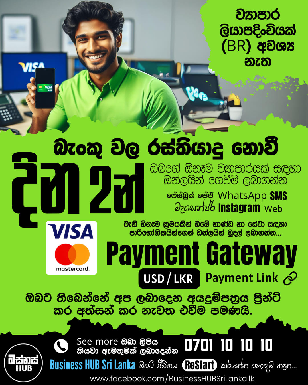 බැංකු වල රස්තියාදු නොවී දින 2න් Payment Gateway එකක්... 🏧 ඕනෑම ව්යාපාරයකට ගැලපෙන Payment Gateway එකක් අරන් දෙන්න අපිට පුලුවන්... 💲 ඩොලර් වලින්ද...