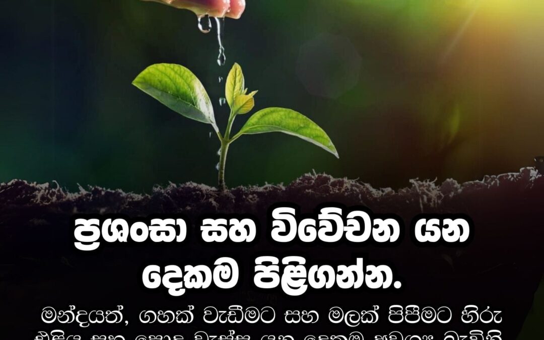 “ප්රශංසා සහ විවේචන යන දෙකම පිළිගන්න. මන්දයත්, ගහක් වැඩීමට මෙන්ම මලක් පිපීමට හිරු එළිය සහ පොද වැස්ස යන දෙකම අවශ්ය වෙන බැවිනි.”