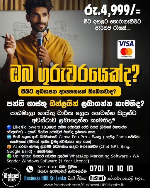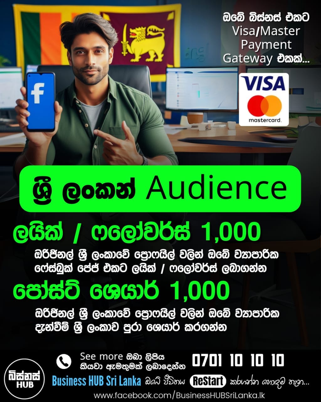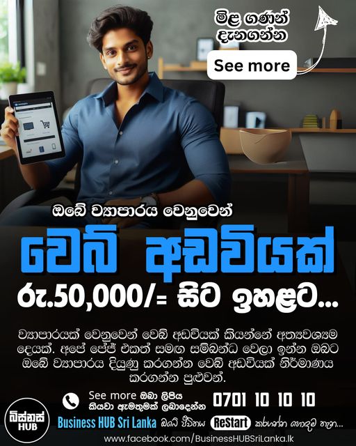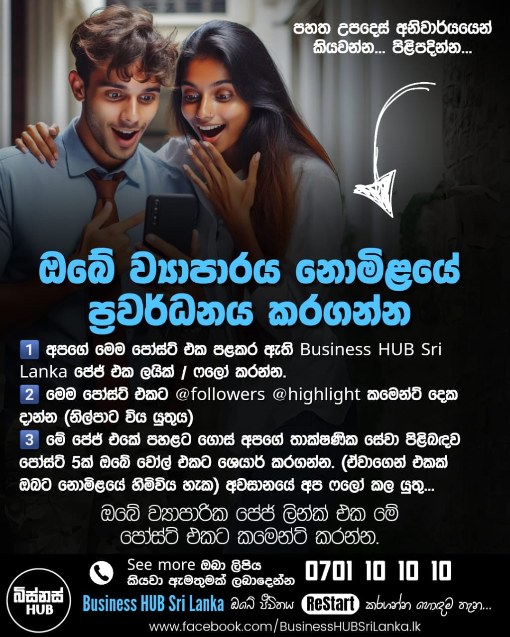 ඔබේ ව්යාපාරයට / ස්වයංරැකියාවට අවශ්ය සියලුම තාක්ෂණික සහ ව්යාපාරික සේවා අපෙන්... දැන්ම 0701101010 අංකයට වට්ස් ඇප් පණිවිඩයක් එවන්න... Business...