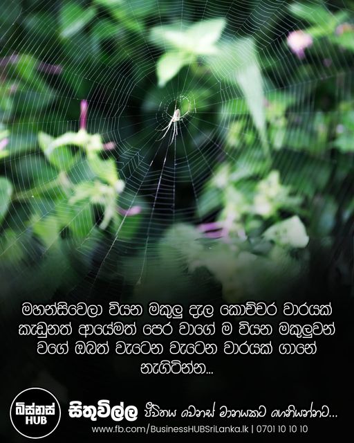 දැකලා තියෙනවා ද.. මහන්සිවෙලා වියන මකුලු දැල කොච්චර වාරයක් කැඩුනත් ආයේමත් පෙර වාගේ ම වියන මකුලුවන්ව... ජීවත් වෙලා ඉන්න තාක්කල් මකුලුවා දැල වියන එක...