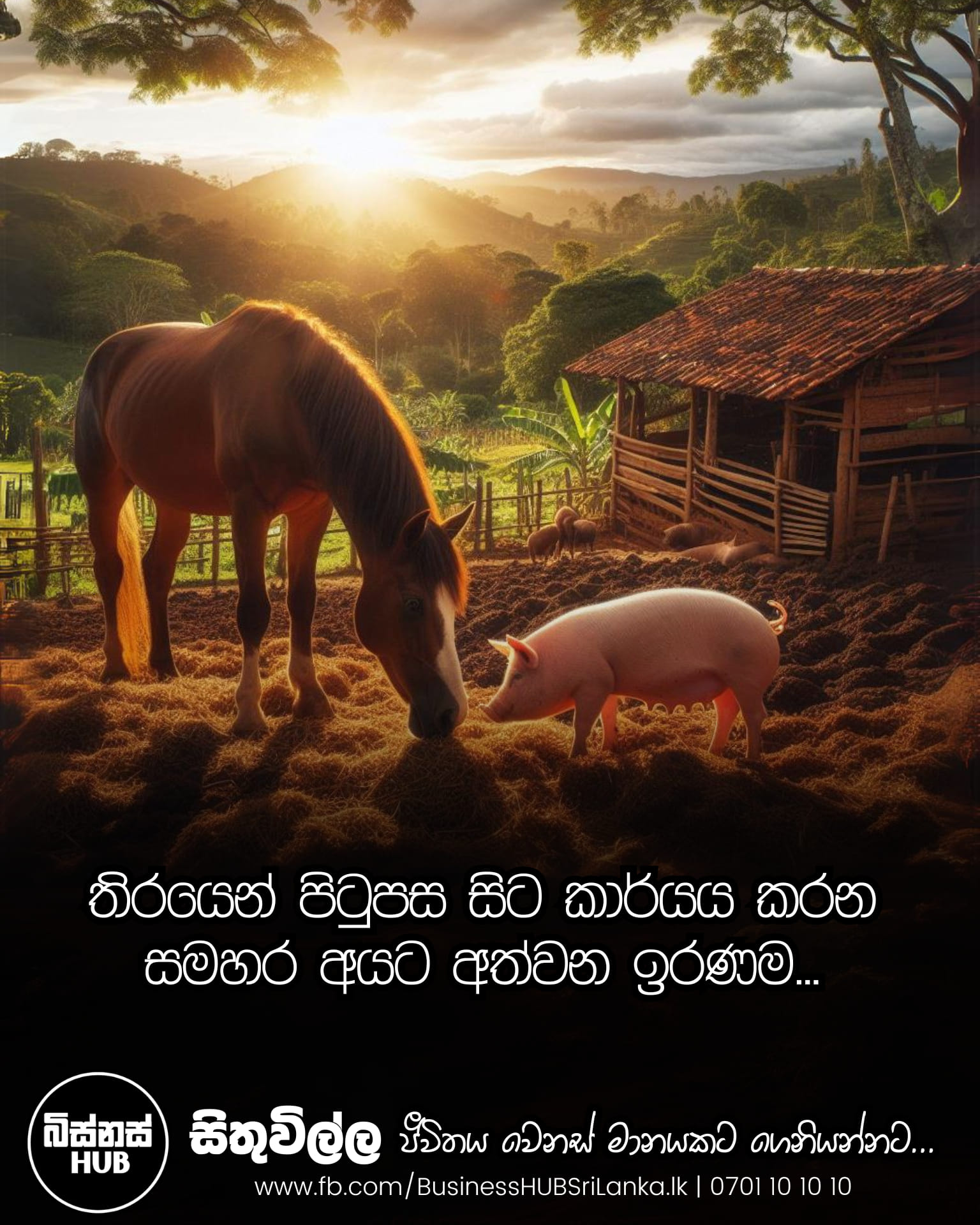 එක්තරා කාලෙක ගමක හිටිය ගොවියෙකුට අශ්වයෙකුයි, ඌරෙකුයි අයිති වෙලා තිබුනා. එක දවසක් අශ්වයා ලෙඩ ගානේ ඉන්නවා දැකලා ගමේ හිටපු වෙද මහත්තයාට මේ ගොවි...