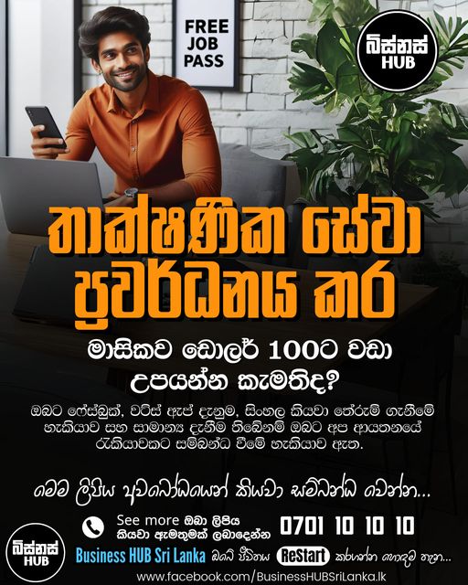තාක්ෂණික සේවා ප්රවර්ධනය කර මාසිකව ඩොලර් 100 වඩා උපයන්න කැමතිද? | Business HUB FREE JOB PASS