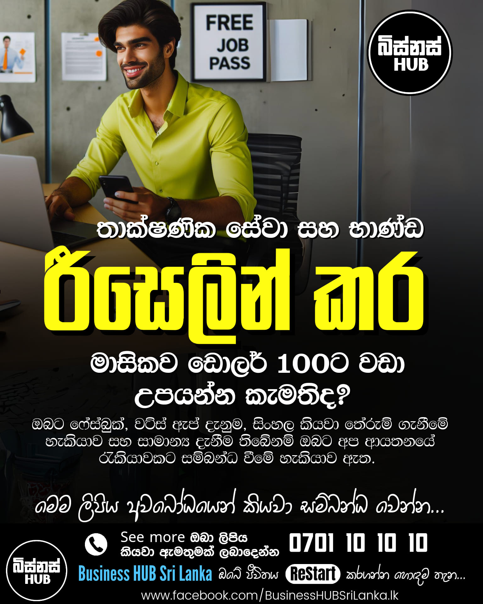 තාක්ෂණික සේවා සහ භාණ්ඩ රීසෙලින් කර මාසිකව ඩොලර් 100 වඩා උපයන්න කැමතිද? | Business HUB FREE JOB PASS