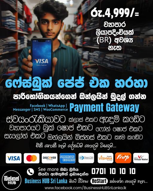 ෆේස්බුක් / වට්ස් ඇප් හරහා පාරිභෝගිකයන්ගෙන් මුදල් ලබාගන්න Payment Gateway එකක්
