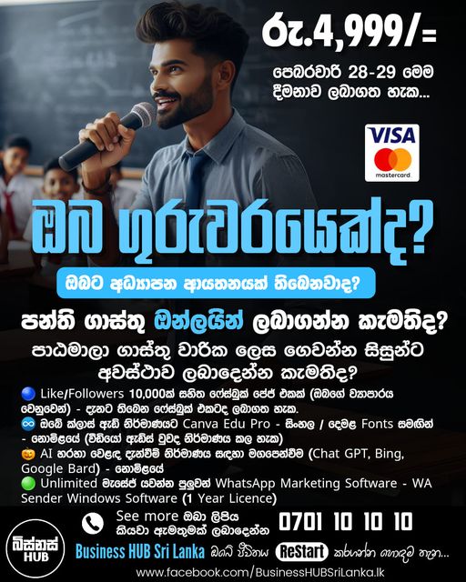 ඔබේ ව්යාපාරයට / ස්වයංරැකියාවට අවශ්ය සියලුම තාක්ෂණික සේවා අපෙන්... දැන්ම 0701101010 වට්ස් ඇප් පණිවිඩයක් එවන්න... Business HUB Sri Lanka -...