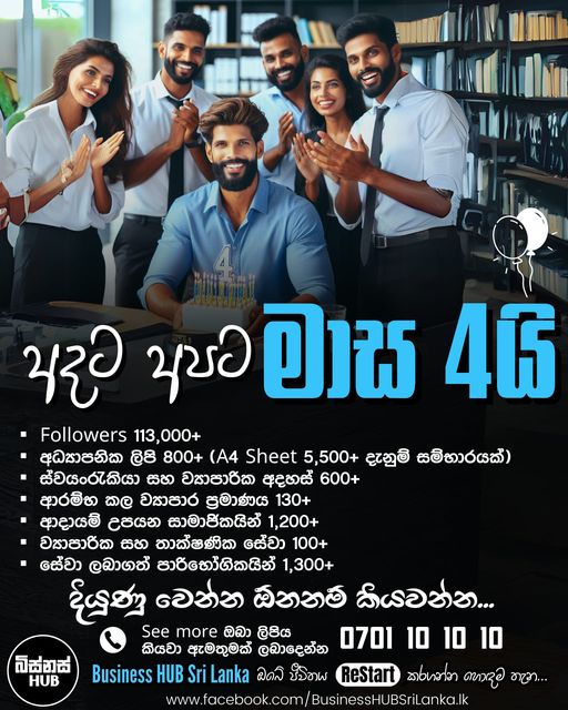 අදට අපට මාස 4යි ▪️ Followers 113,000+ ▪️ අධ්යාපනික ලිපි 800+ (A4 Sheet 5,500+ දැනුම් සම්භාරයක්) ▪️ ස්වයංරැකියා සහ ව්යාපාරික අදහස් 600+ ▪️ ආරම්භ...